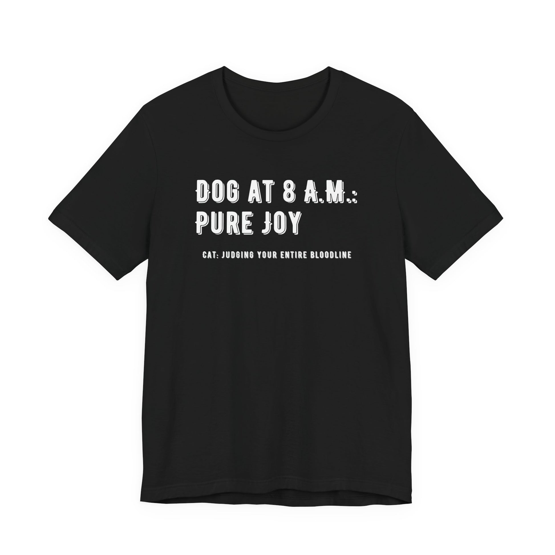 Dog At 8 A.M. Pure Joy, Cat Judging T-Shirt — Funny Dog/Cat Lover Morning Tee