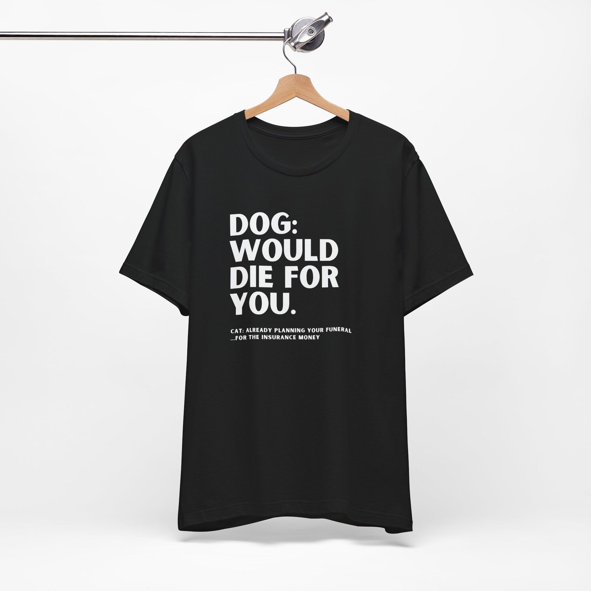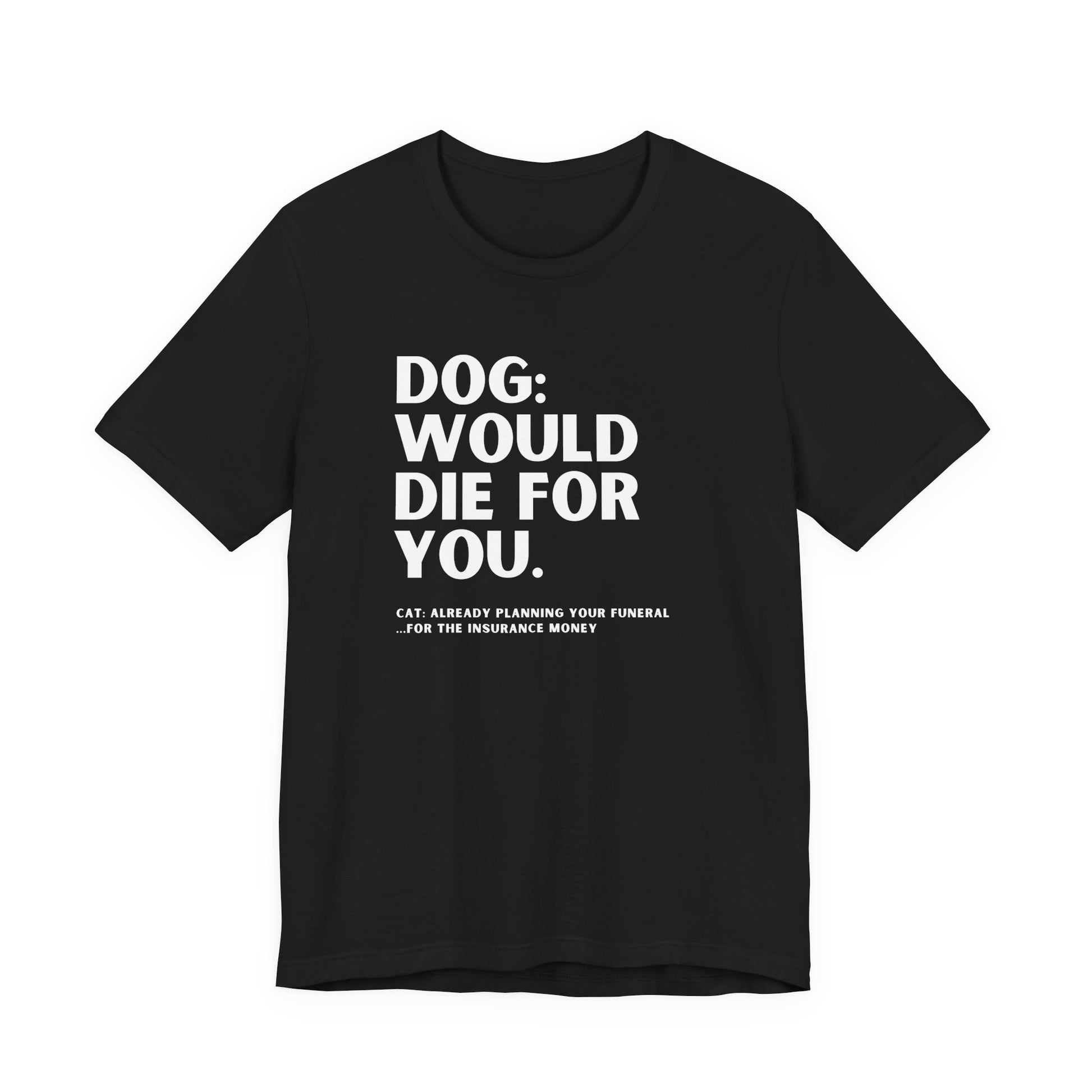 Dog: Would Die For You, Cat Planning Tee — Funny Dog/Cat Lover Shirt