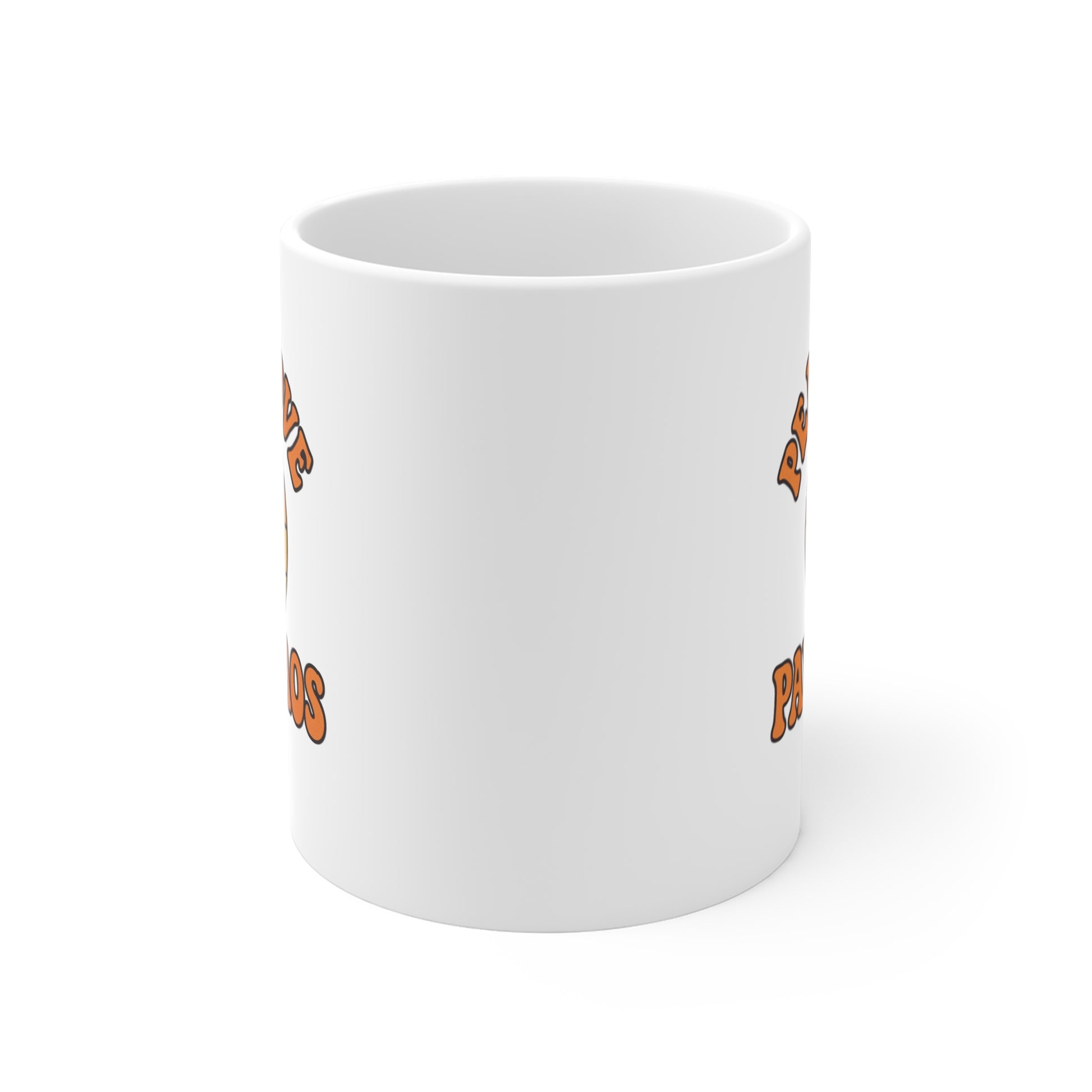 Warm, playful, and a little bit rebellious — this 11oz ceramic mug celebrates the joyful mess of pet life. A retro sunburst in sunset shades frames a bold paw print while the hand-lettered text reads “Peace Love Paw Chaos.”